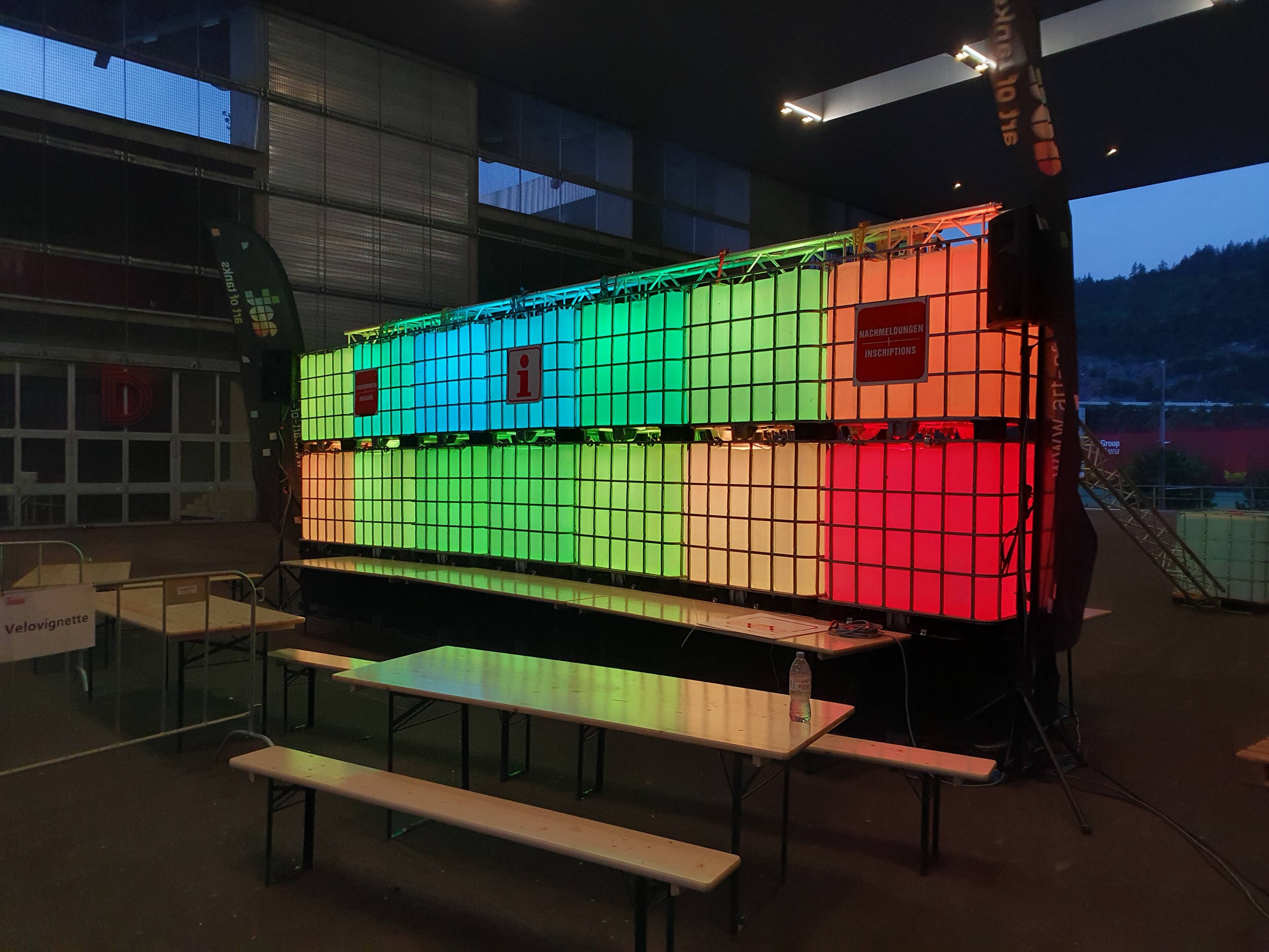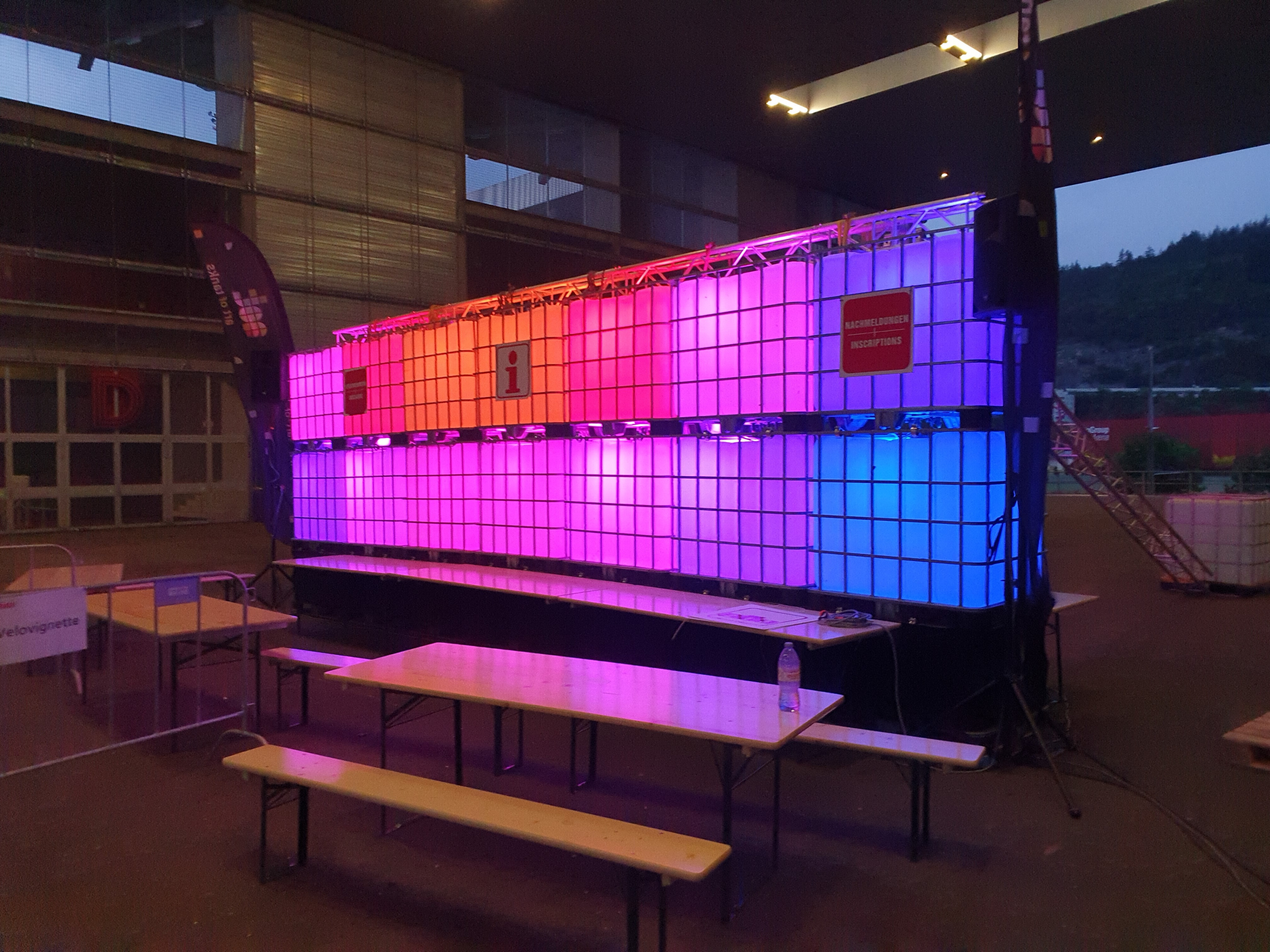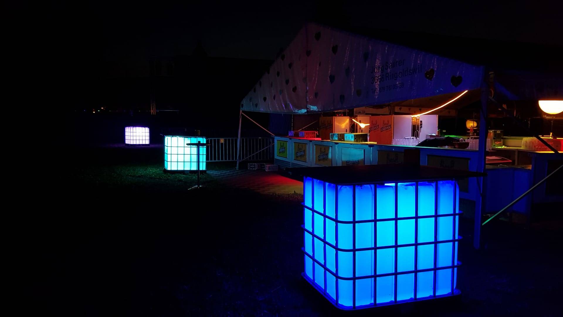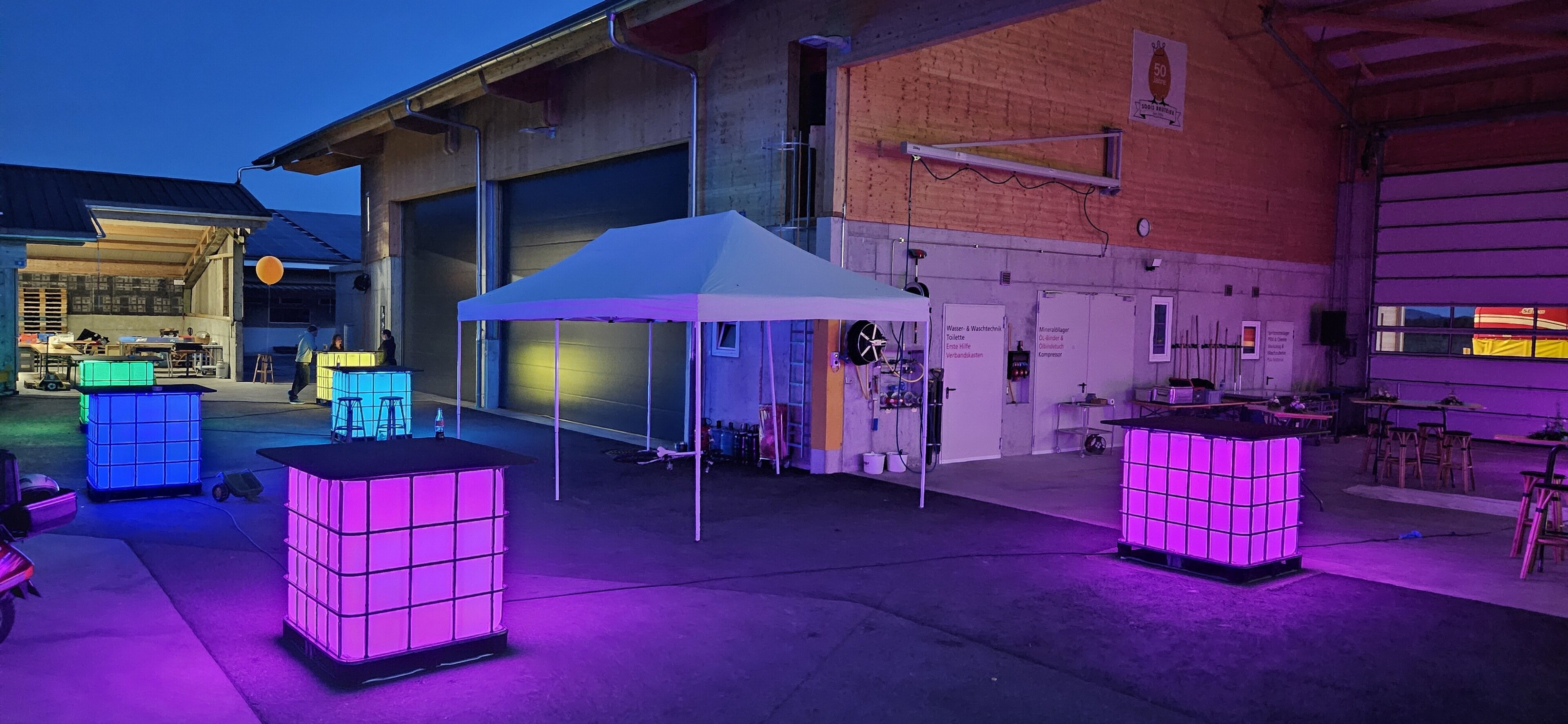 "Am Helferfest hatten wir die Lichttanks an der Bar aufgestellt, als Bar-Tische und Licht! Es gab einen guten Übergang von den Esstischen zur Bar! Das Lichtspiel gab eine Atmosfähre und es war nicht zu hell oder dunkel! Einfach toll!" - OK STF 2016, Ressort Unterhaltung