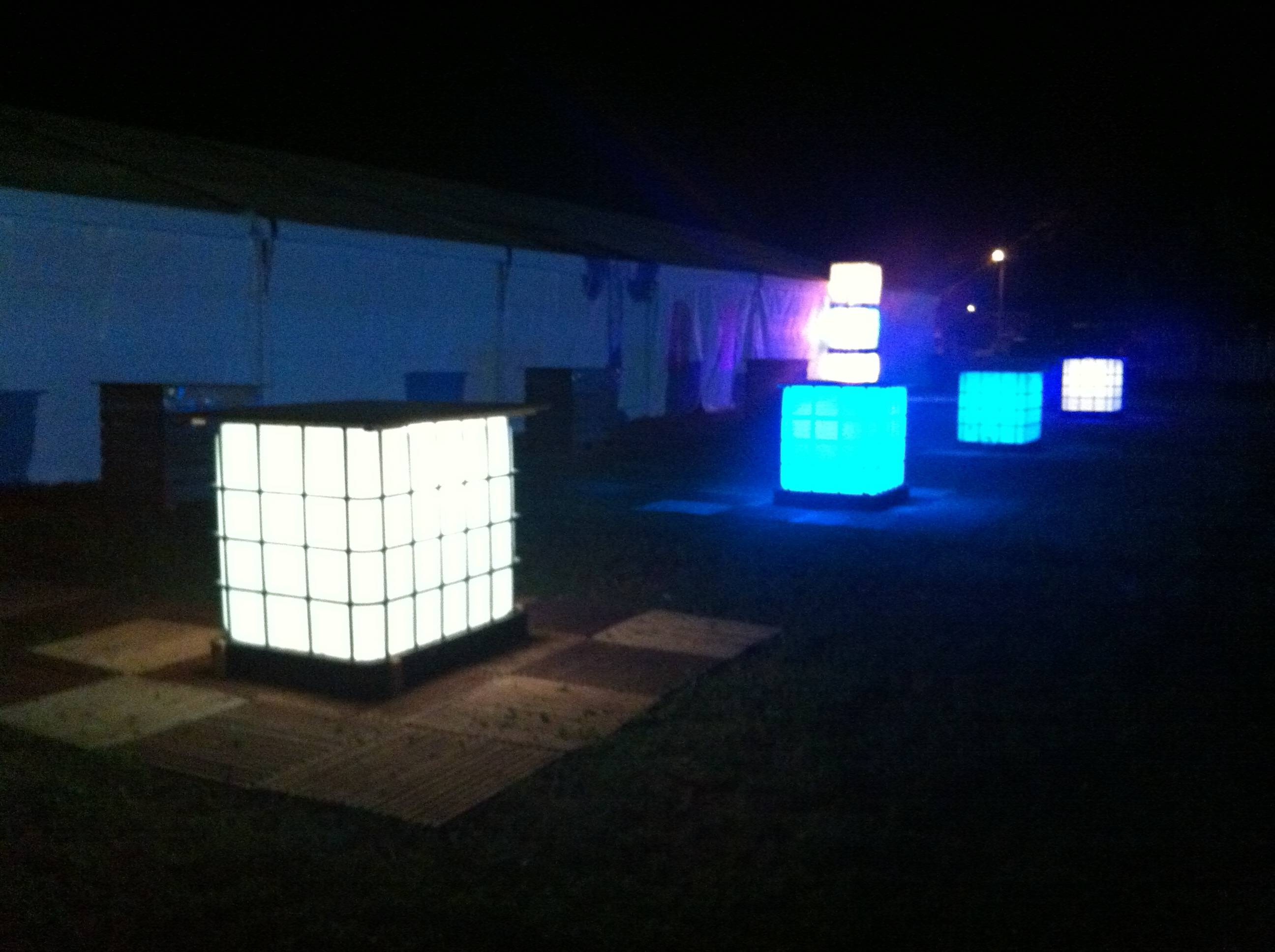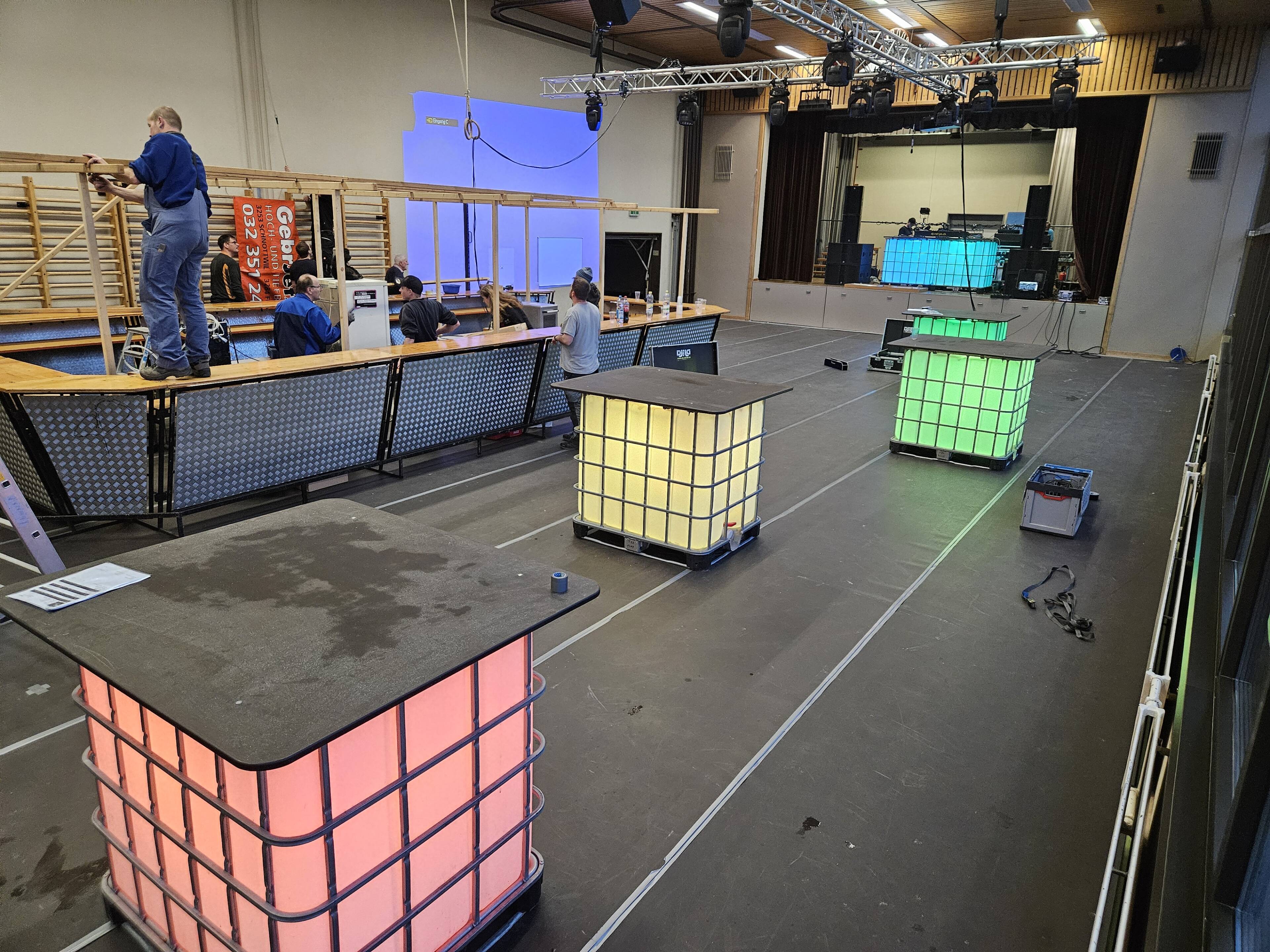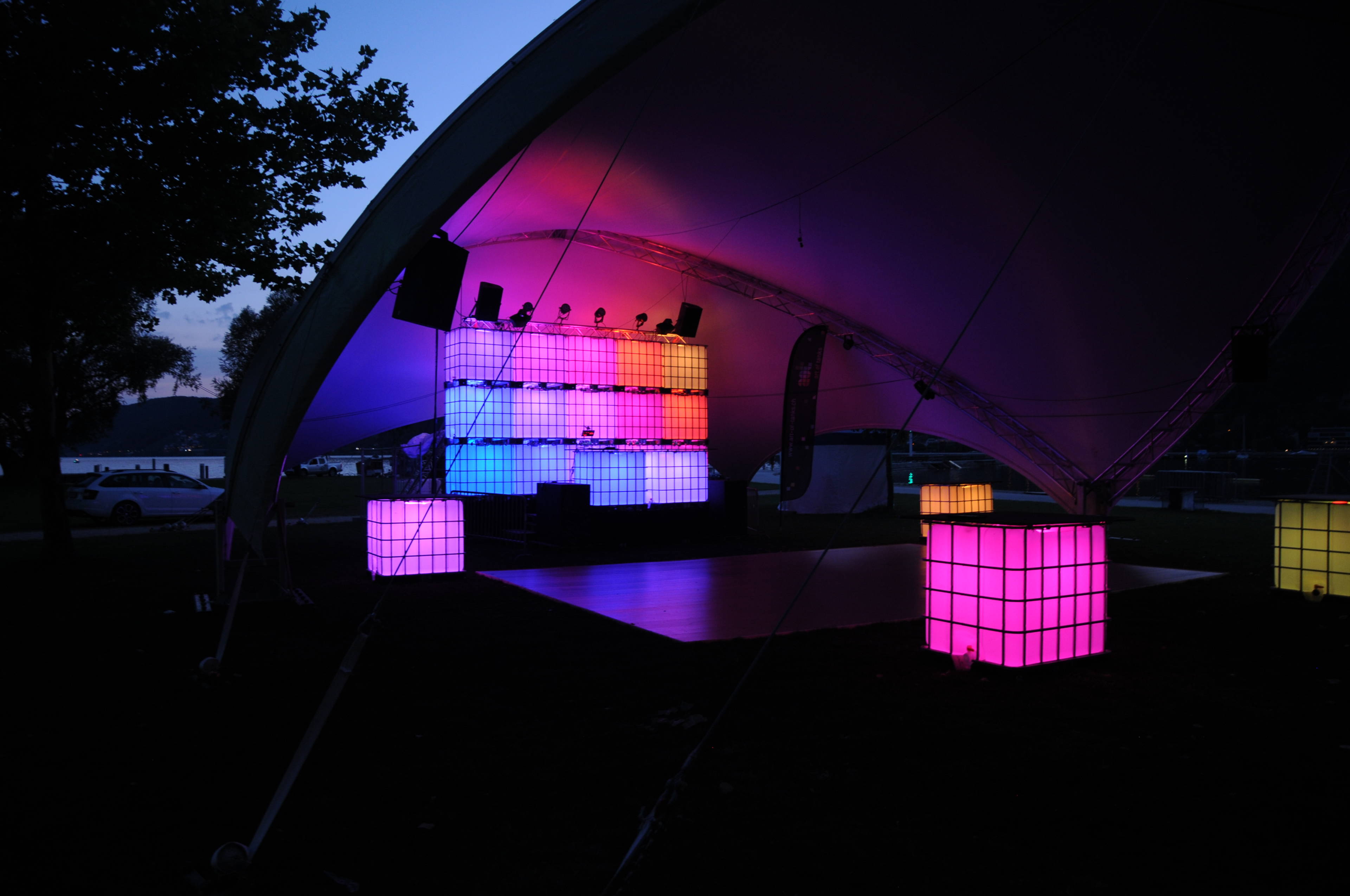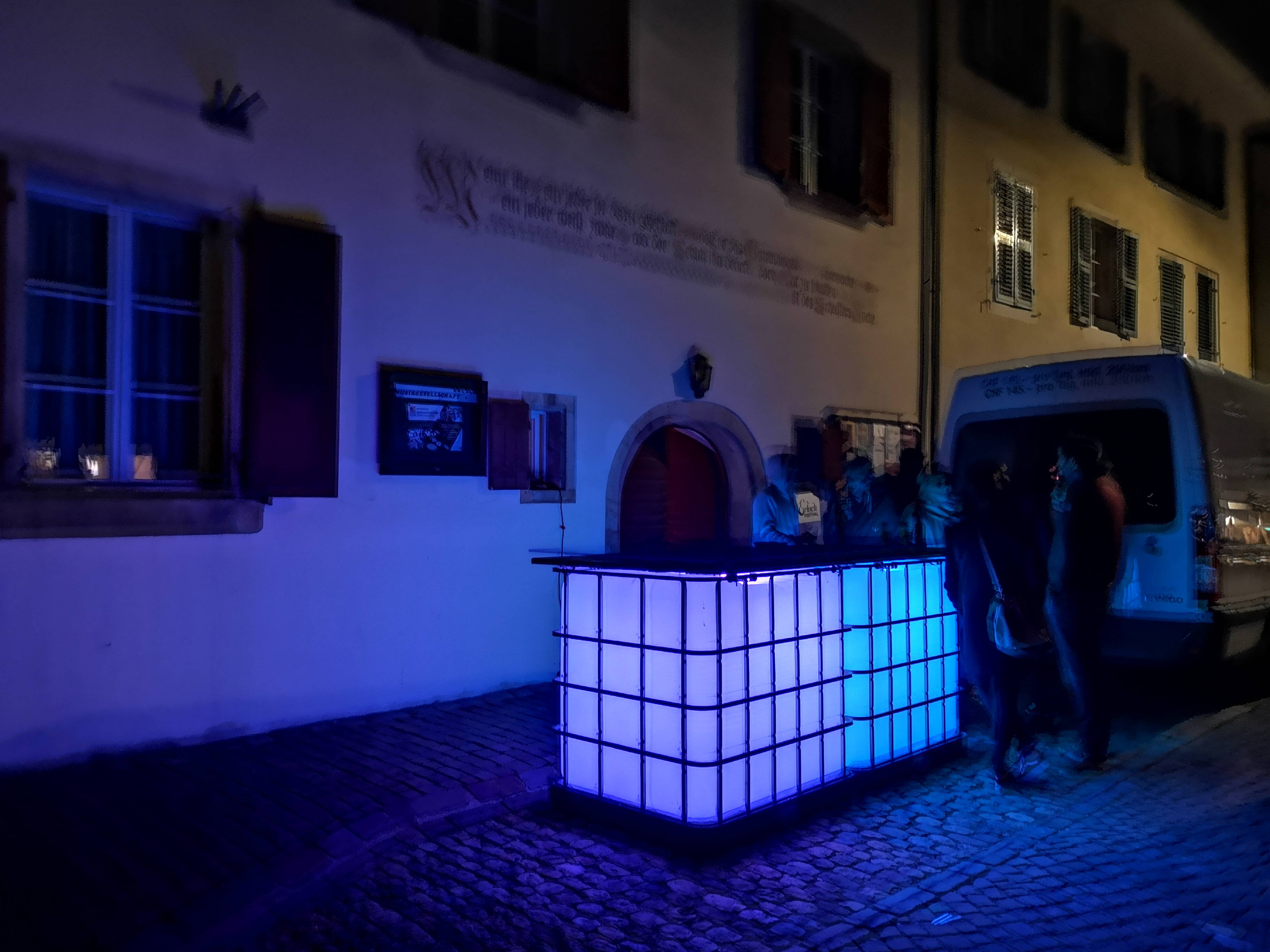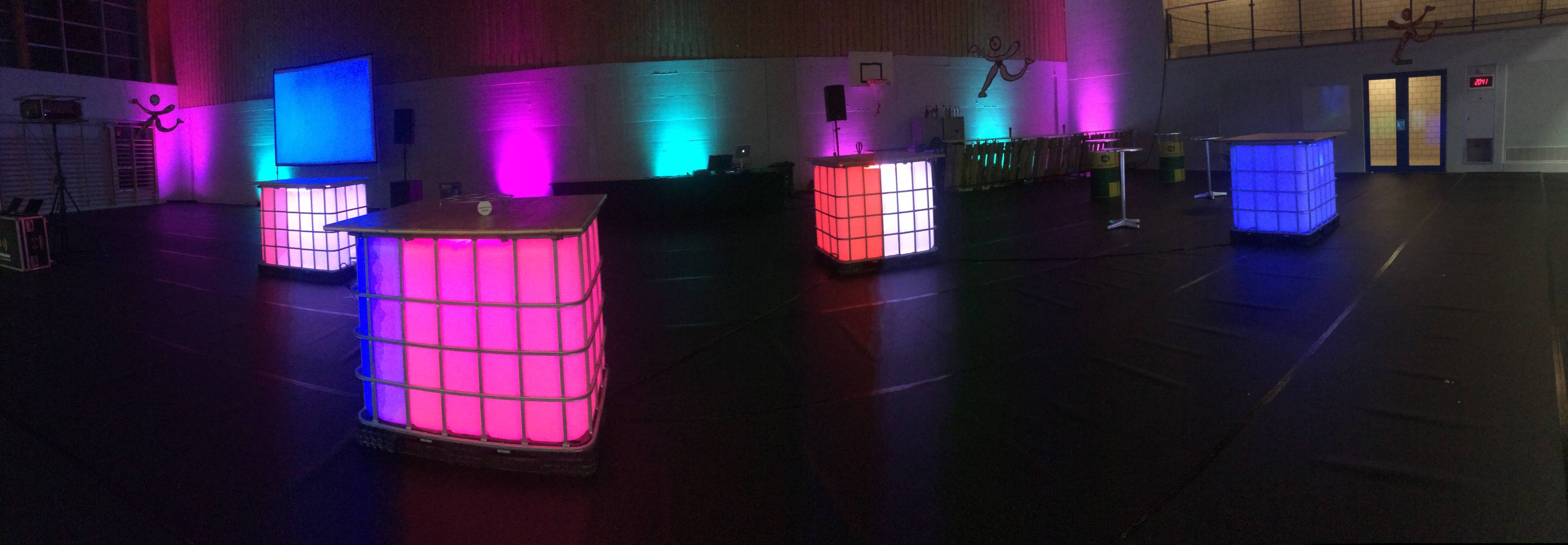"Am Helferfest hatten wir die Lichttanks an der Bar aufgestellt, als Bar-Tische und Licht! Es gab einen guten Übergang von den Esstischen zur Bar! Das Lichtspiel gab eine Atmosfähre und es war nicht zu hell oder dunkel! Einfach toll!" - OK STF 2016, Ressort Unterhaltung