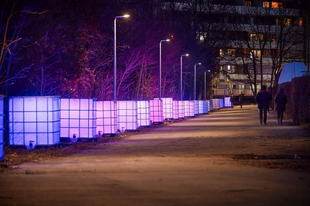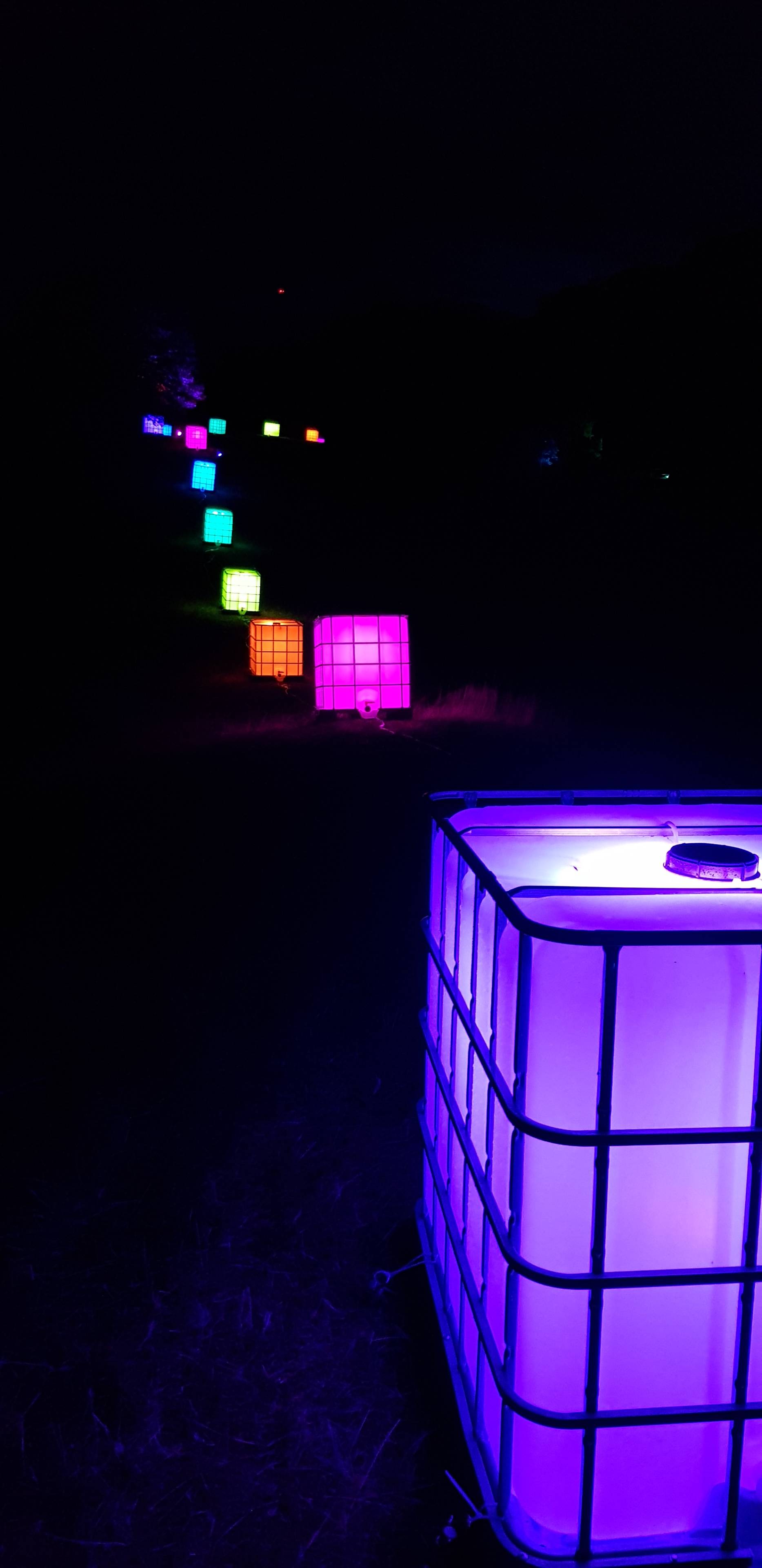 Tankelemente: 24 Tanks als Wegbeleuchtung und Teil des Rundgangs der Ausstellung